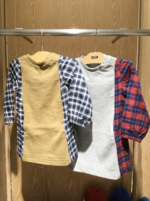 サイドと袖のチェックがポイントの秋カラーのワンピースは、同柄でBOYSトップスもご用意しております♪