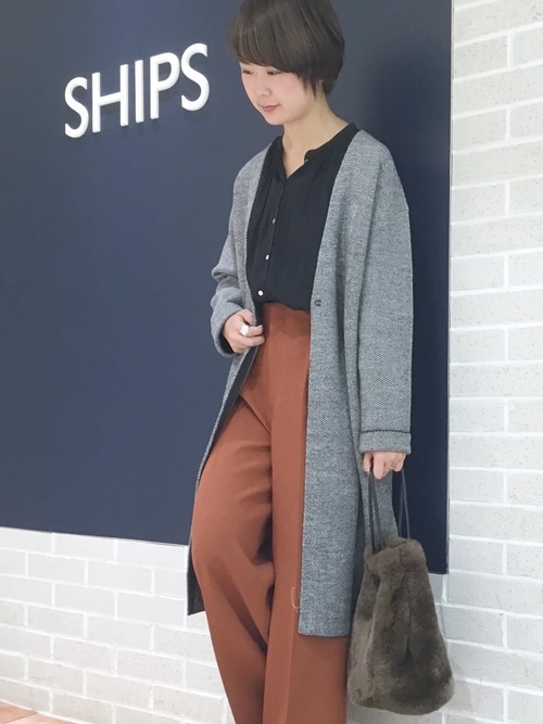 朝晩冷え込むこの季節、さらっと羽織れる一枚です。 ボトムのワイドパンツで秋らしさも。