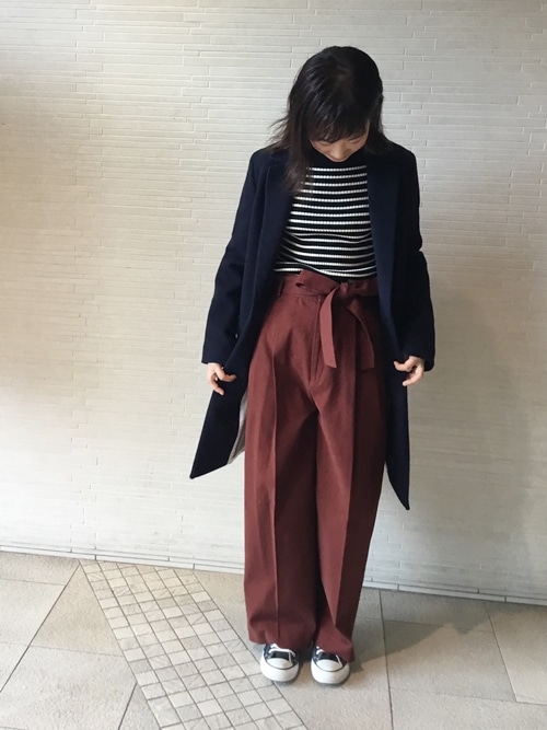 毎年人気のチェスターコートに今年らしい形のパンツを合わせました。