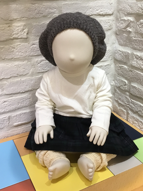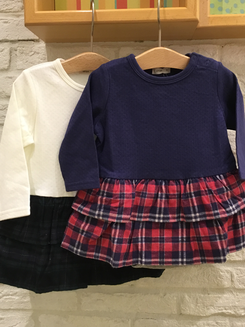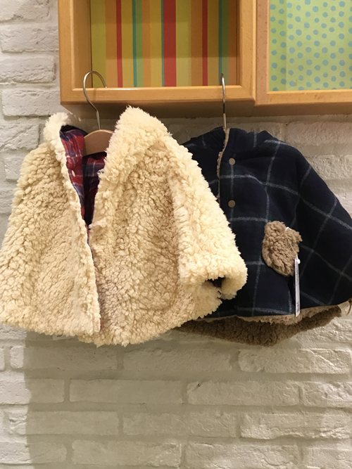 Baby girls らしいスカート部分がフリルになっているロンパースです。1枚でもサマになりますが、気温が下がってきていますので毎年好評のマントを合わせました。