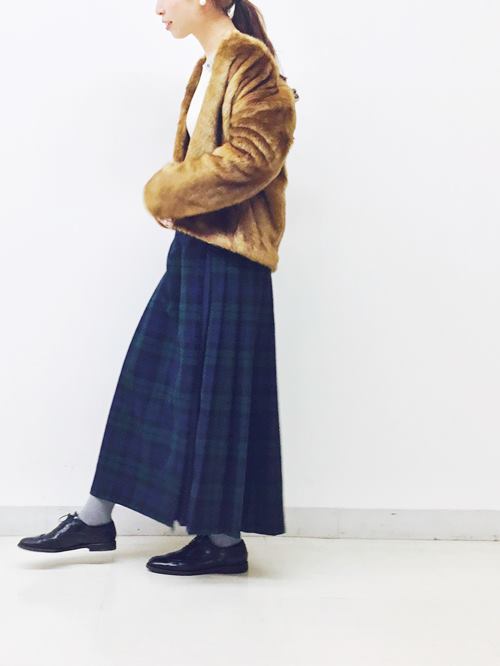 1着で華やかなコーディネートになる、エコファーコートのご紹介。 シンプルなスタイリングに映えるおしゃれなアイテムです。