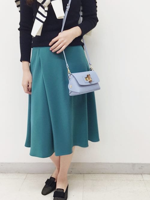 素敵なスカートが入荷致しました。色味も上品で、履いたシルエットも広がりすぎず、大人な印象に。 寒い気候が続きますが、是非色物で気分を上げてみてはいかがでしょう。