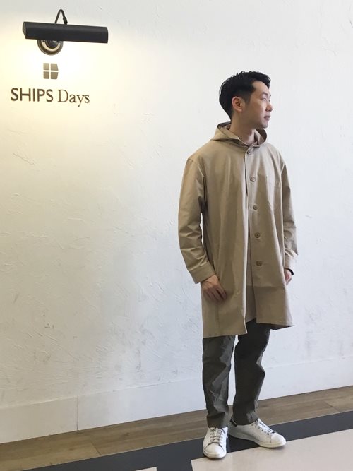 SUNNY SPORTS×SHIPSDaysのノーカラーフードコート。軽い着心地でAラインが今の気分にピッタリです。