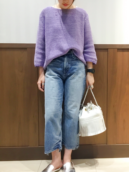 上品なラベンダーカラーはカジュアルにもキレイめにもおすすめ。 デニム合わせや、フレアスカートなど幅広いコーデを楽しんでいただけます。