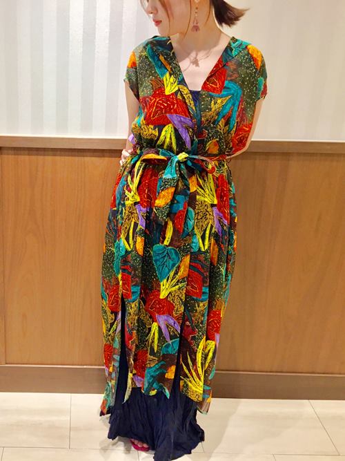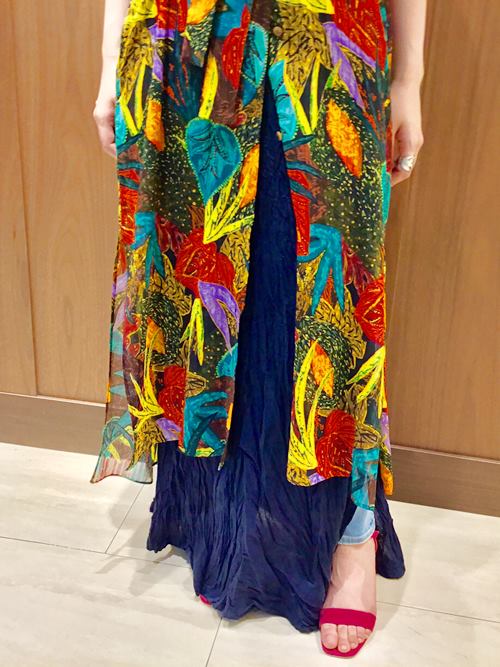 CURRNTAGEのシルクワンピースに120%Linoのマキシワンピースをレイヤード。新鮮な大人のリゾートコーデ、おすすめです。
