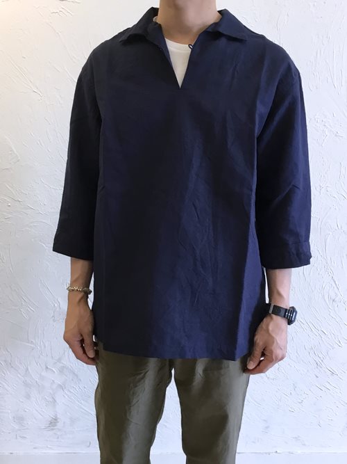リネンのスキッパーシャツを主役に、大人のリラックスコーデ。