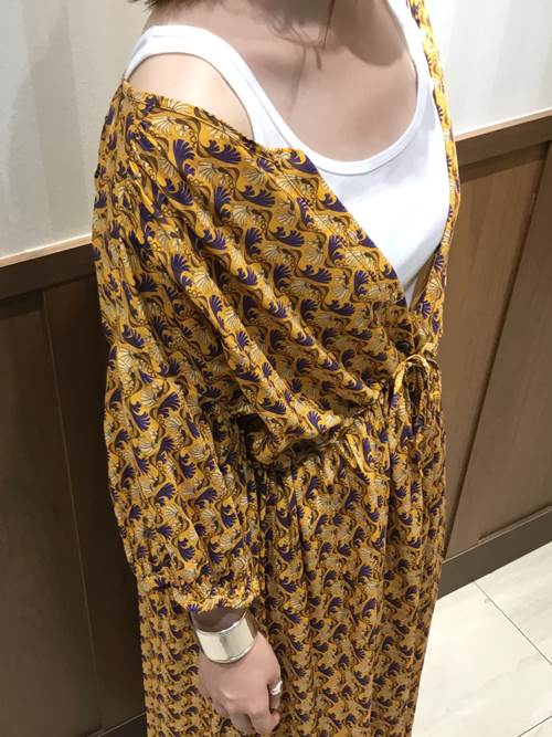 ペイズリー柄が可愛いワンピース。ヌーディなタンクトップ合わせで大人っぽく。