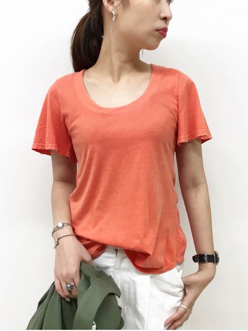 夏に着やすいカルベリーズのTシャツが入荷しました。ラフながらシルエットはどれも女性的です。是非試しにいらしてください。