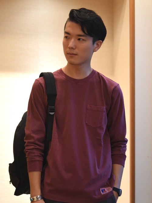 毎年定番のRUSSELL ATHLETIC別注ロングスリーブをメインに、他はブラックでまとめたコーディネート。カラーから秋を取り入れてみてはいかがでしょうか。