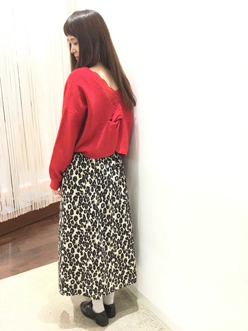 トレンドのレオパード柄スカートに赤を合わせて インパクトのあるコーディネート。 18FWもTHE IRON入荷しております!