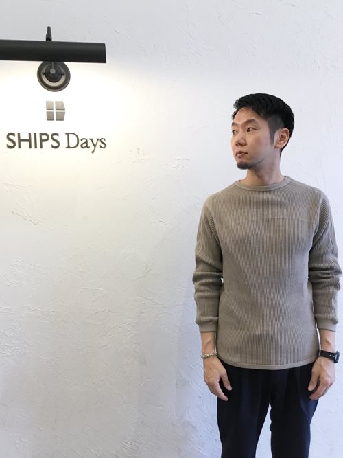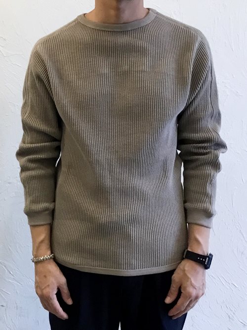 1枚でも決まりの良いワッフルサーマルカットソー。 インナーとしても重宝します。
