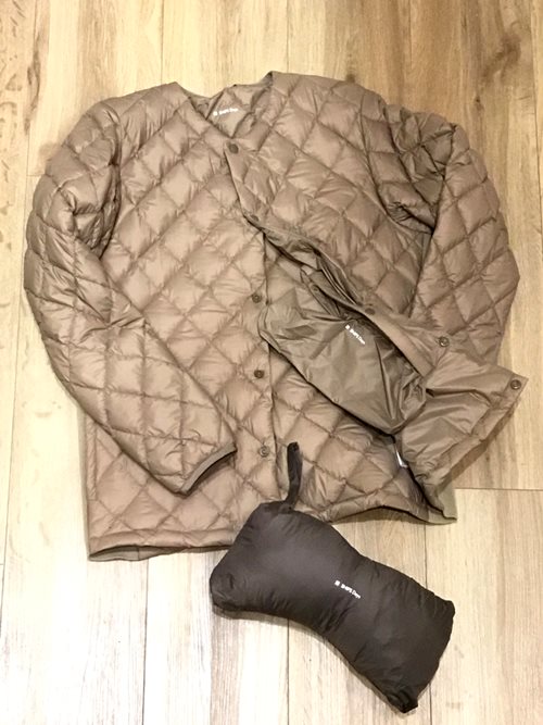 河田フェザーの【KWD WORLD PREMIUM】のダウンを採用した特別仕様。内ポケットに収納袋が付いているので、コンパクトにでき、持ち運びにも便利です。