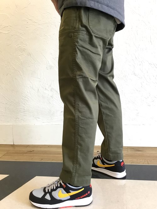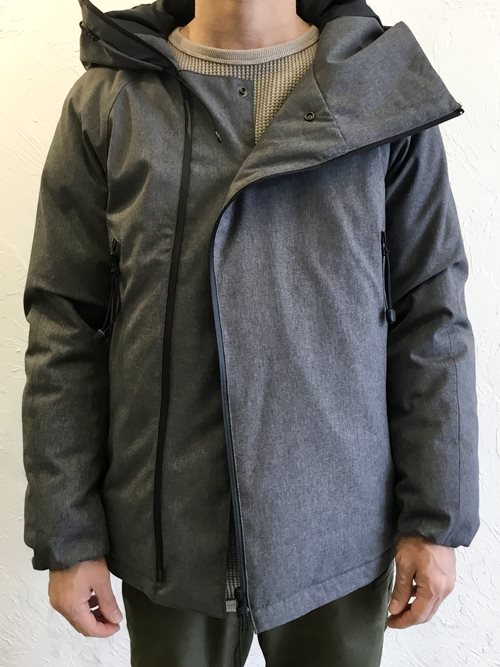 河田フェザーを使用した高機能ダウンジャケットに、新入荷のクールマックステクノロジーの素材を使用したチノパンのスポーティなコーディネート。