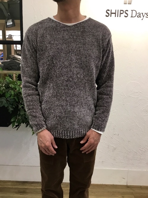 モコモコの素材感が着心地の良いニット。インナーにロンTが付いており、1枚で決まるアイテム。お持ちのシャツをインナーに替えても良しです。プレゼントにもおススメです!