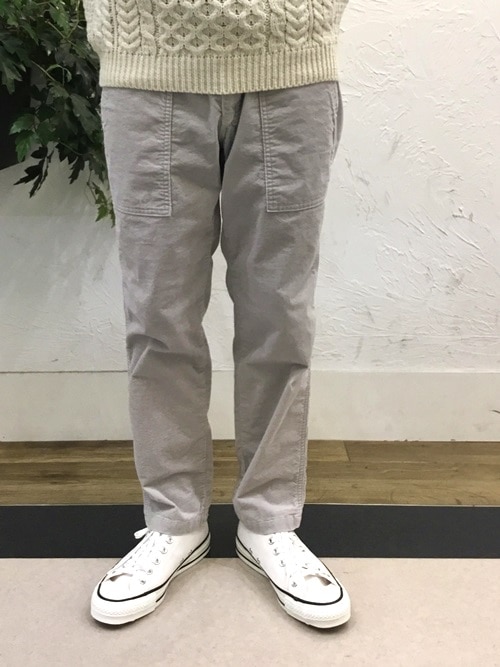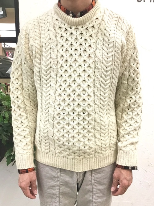 インバーアランのケーブル編みのニットを主役にした、 同系色のワントーンコーディネイト。