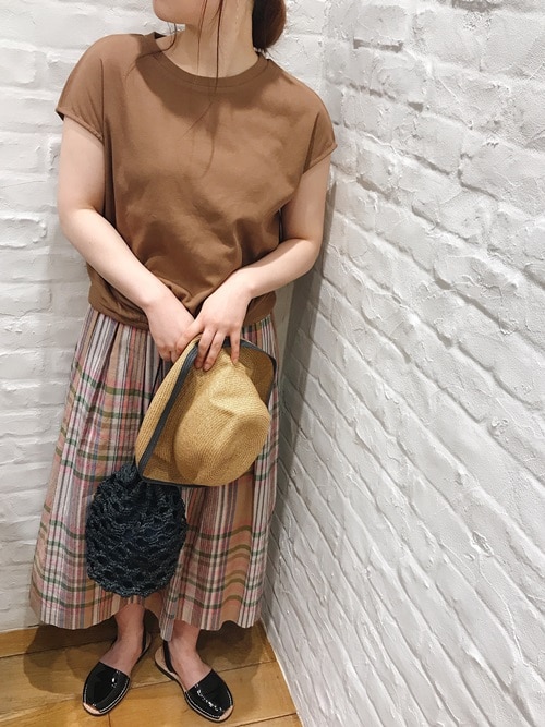 大好評のチェックスカートを取り入れた晩夏コーディネイトです。 ブラウンは今季トレンド感のある着こなしが出来るのでおススメです。