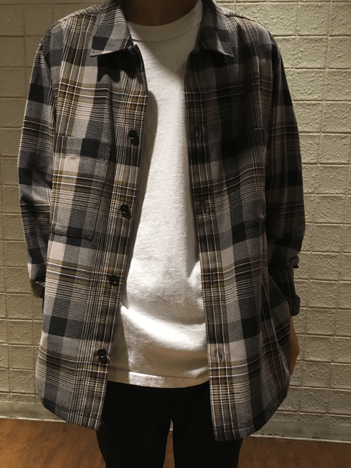 全体を落ち着いた色味でまとめ、季節感が感じられる秋らしいコーディネートになっています。