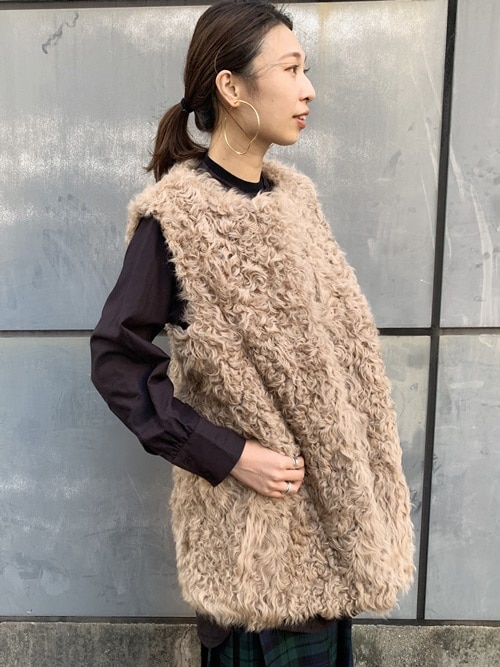 ファーベストを使ったスタイリング。 秋の装いにピッタリのO'neilのスカートと合わせてコーディネートしました。