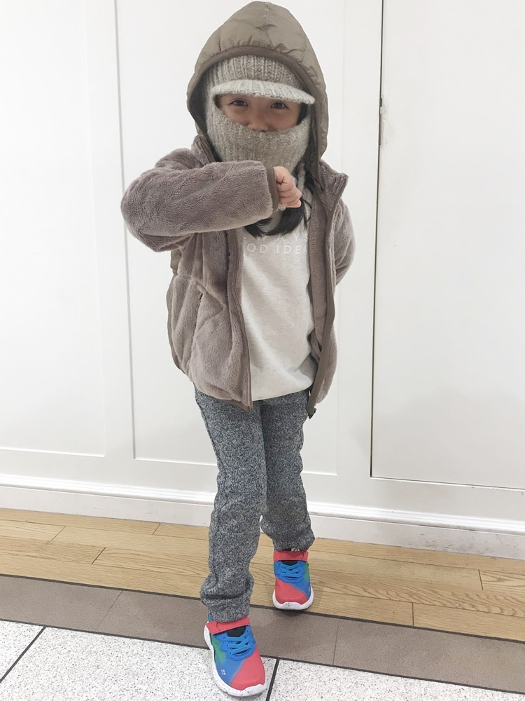 ARCH &LINEのファーアウターに、Gramicciのニットフリース素材のパンツを合わせた、もこもこ暖かいコーディネート♪ ニットの帽子は、お顔をすっぽり隠すこともできますよ☆