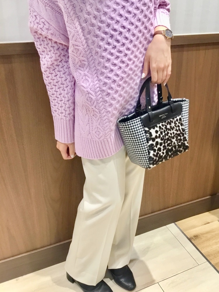 冬らしい編み地が可愛いケーブルニット。 ホワイトパンツで大人っぽく○