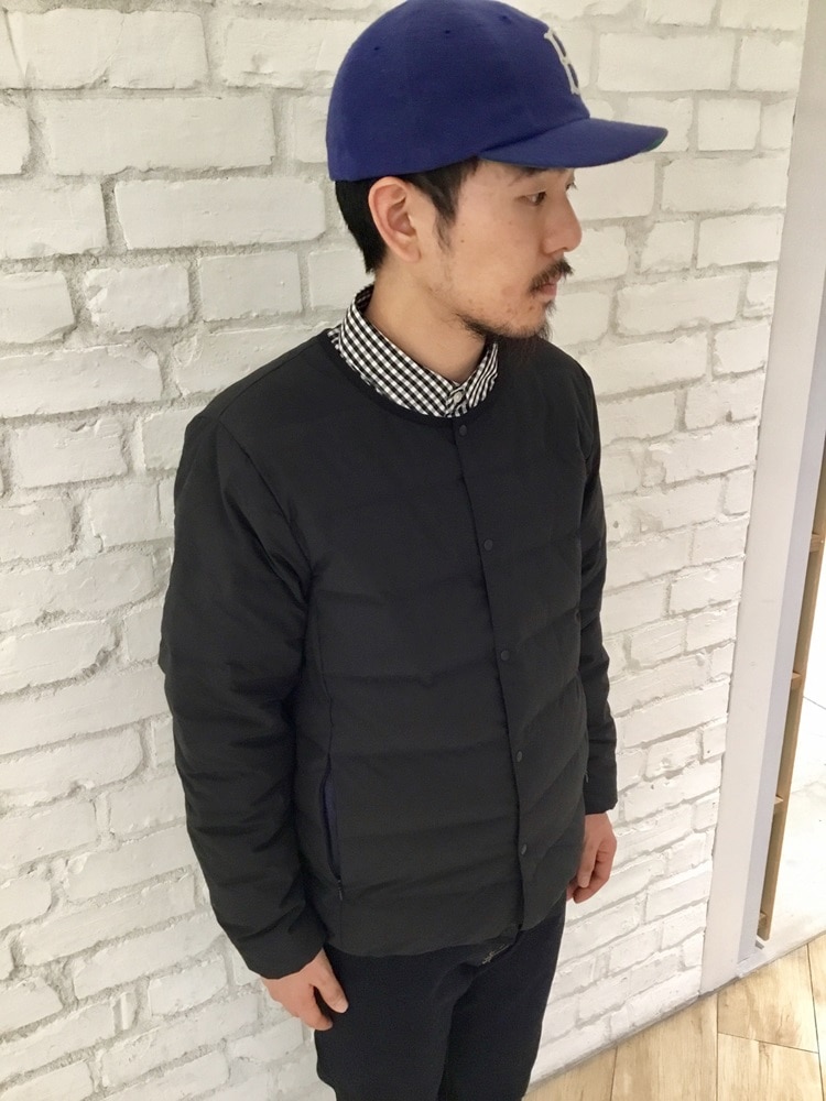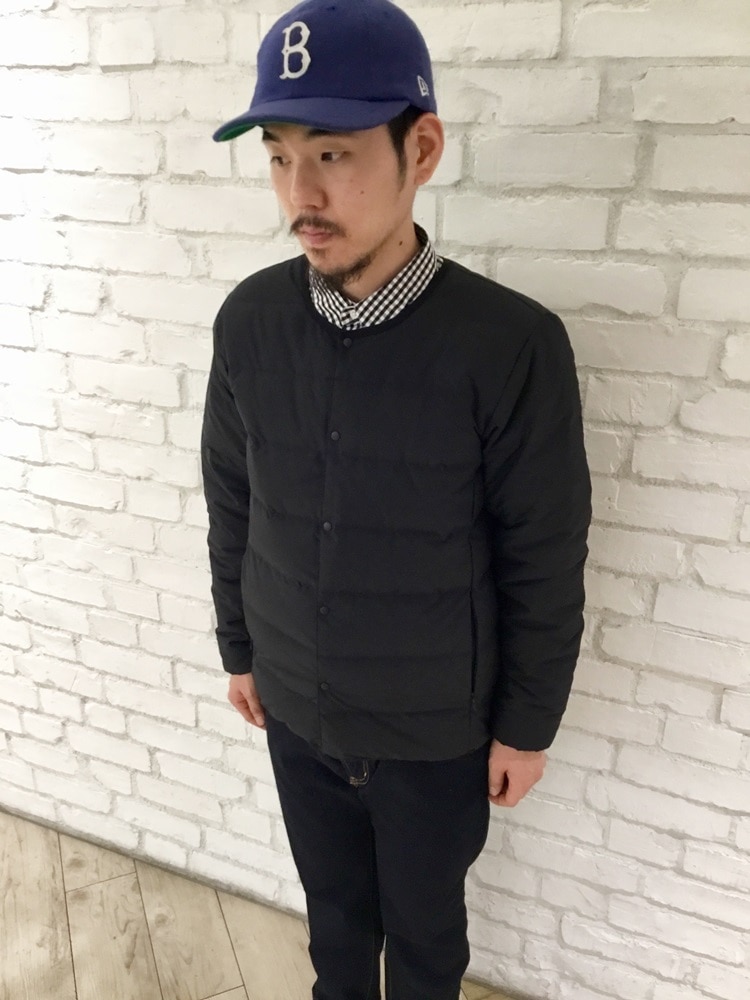 ノーカラーのインナーダウンを軸にギンガムチェックでキレイにまとめました。