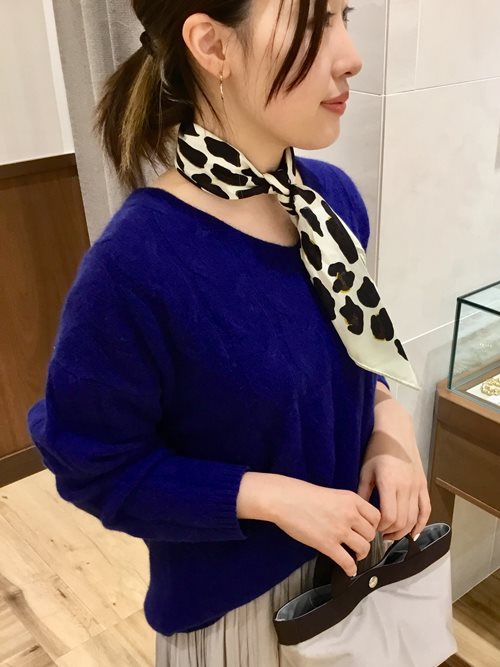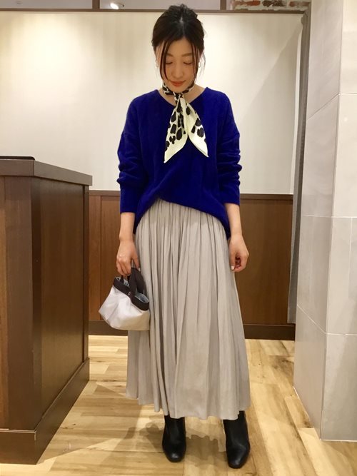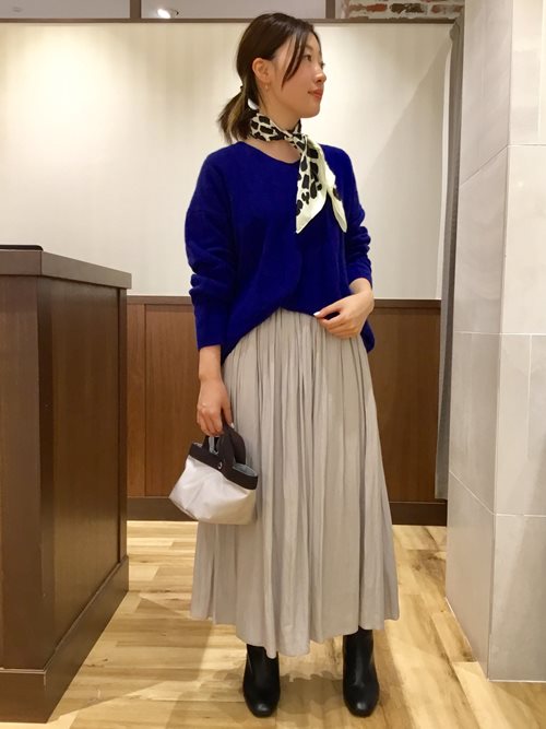 大人っぽいケーブルが可愛いカラーニット。 とろみスカートで春を意識して○