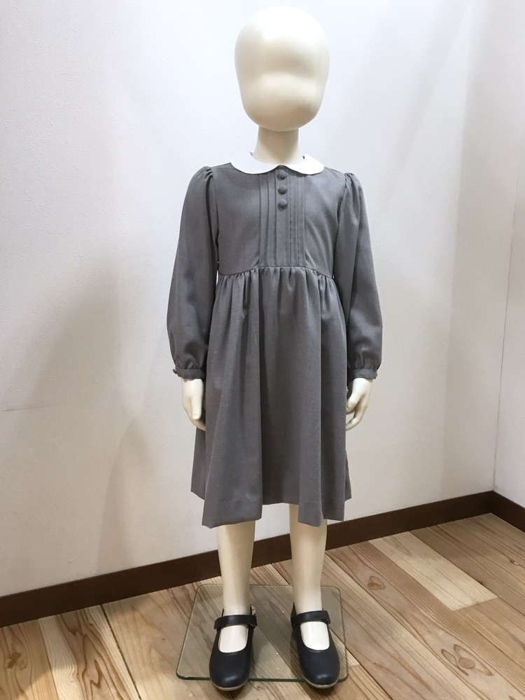 白い襟元にピンタックの胸元、とろみのある素材感がとても上品で可愛らしいワンピースです。ご入学・ご卒業の特別な日に♪