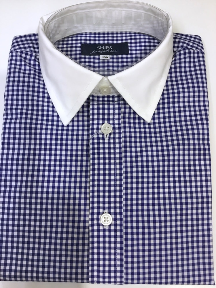 〔110〕SHIPS KIDS:ギンガム クレリック レギュラーカラー シャツ(100〜130cm)