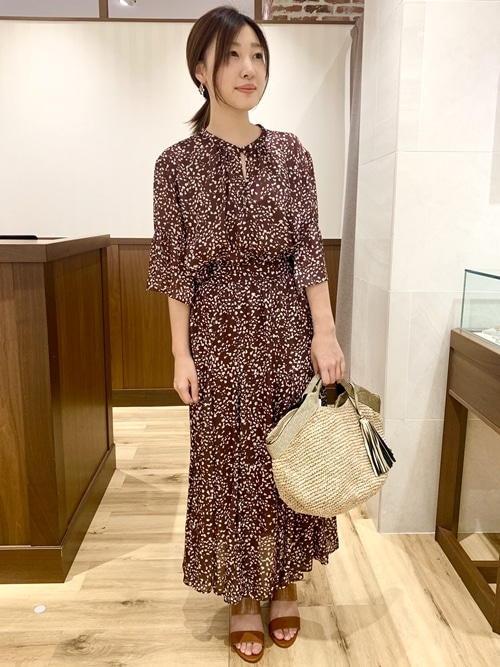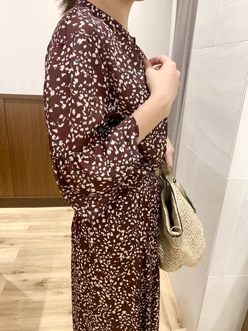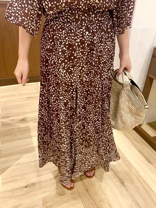 フレアスリーブが大人可愛いブラウンのブラウス。 スカートも同素材でワンピース風にも◎