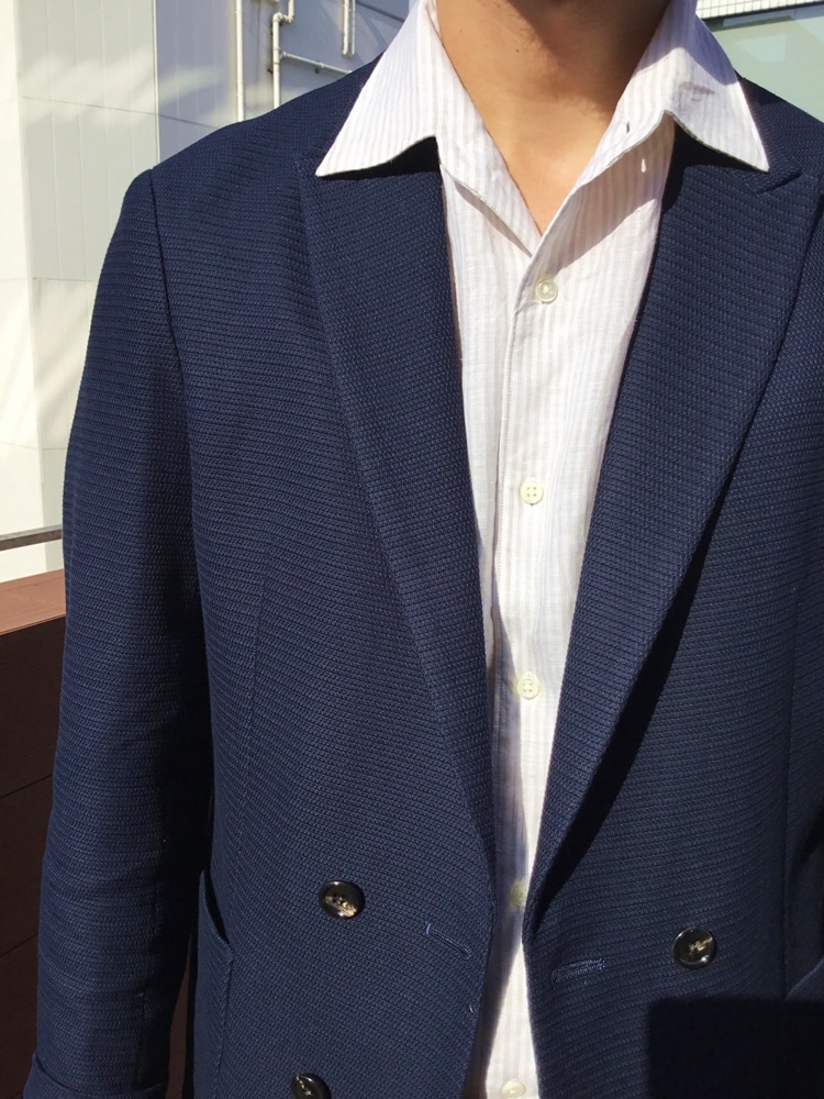 素材感:さらっとしたサマーウール素材でストレス無く着用していただけます。