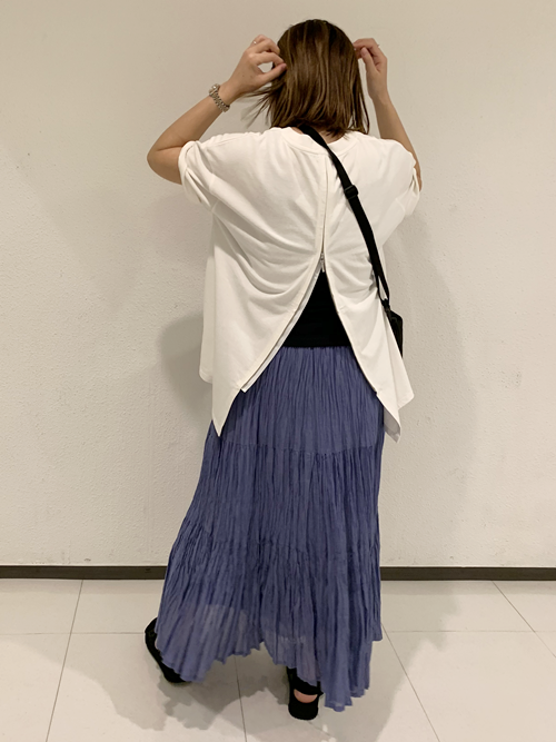 【着用レビュー 】 身長:157cm / 着用サイズ:ONE SIZE トップスがシンプルなので少しボリュームのあるスカートで抜け感を出しました。