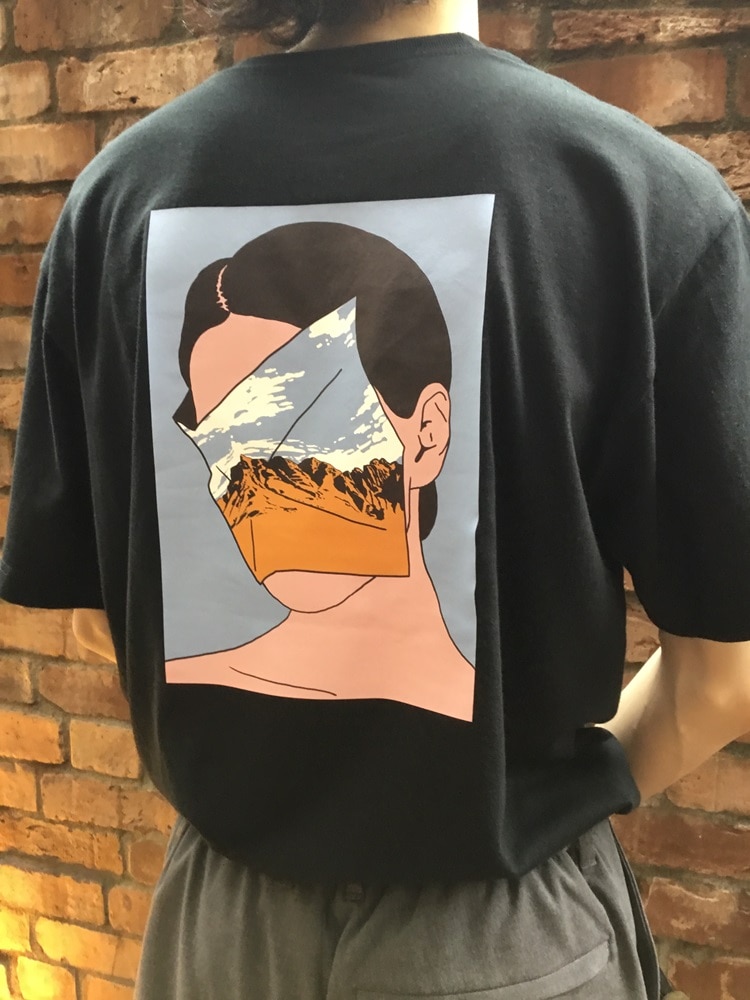 綺麗目タックインスタイルにインパクトのあるバックプリントTシャツにボディーバックを合わせてカジュアルに仕上げました。