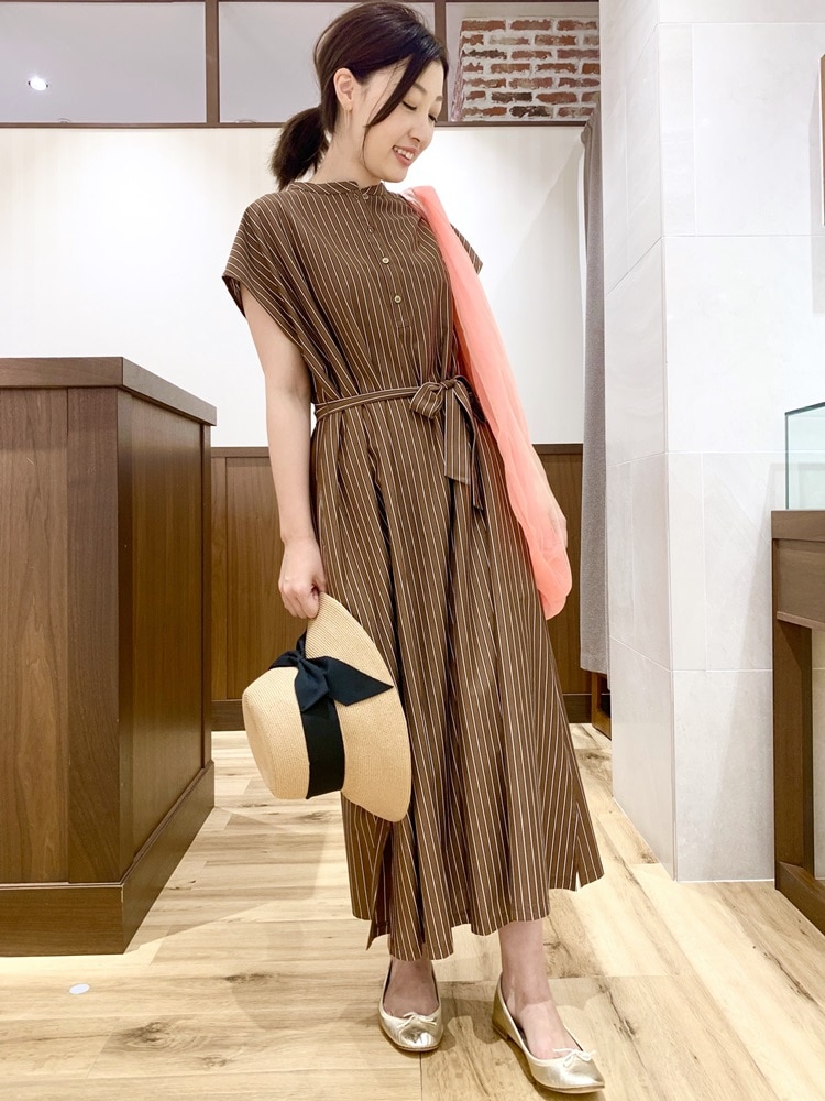 総柄のワンピースは程よく伸びのある着心地が魅力。