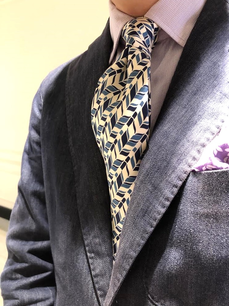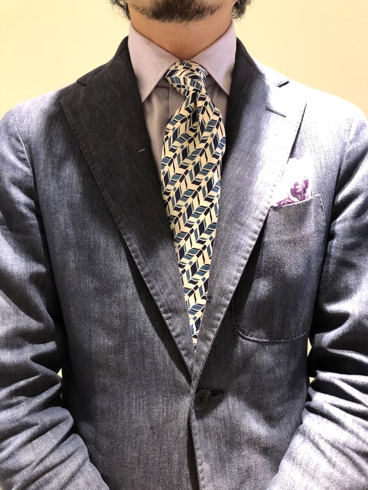 毎年ご好評頂いているBIGIのネクタイを使ったVゾーンスタイリングです。 こちらは45th ANNIVERSARYモデルでございます