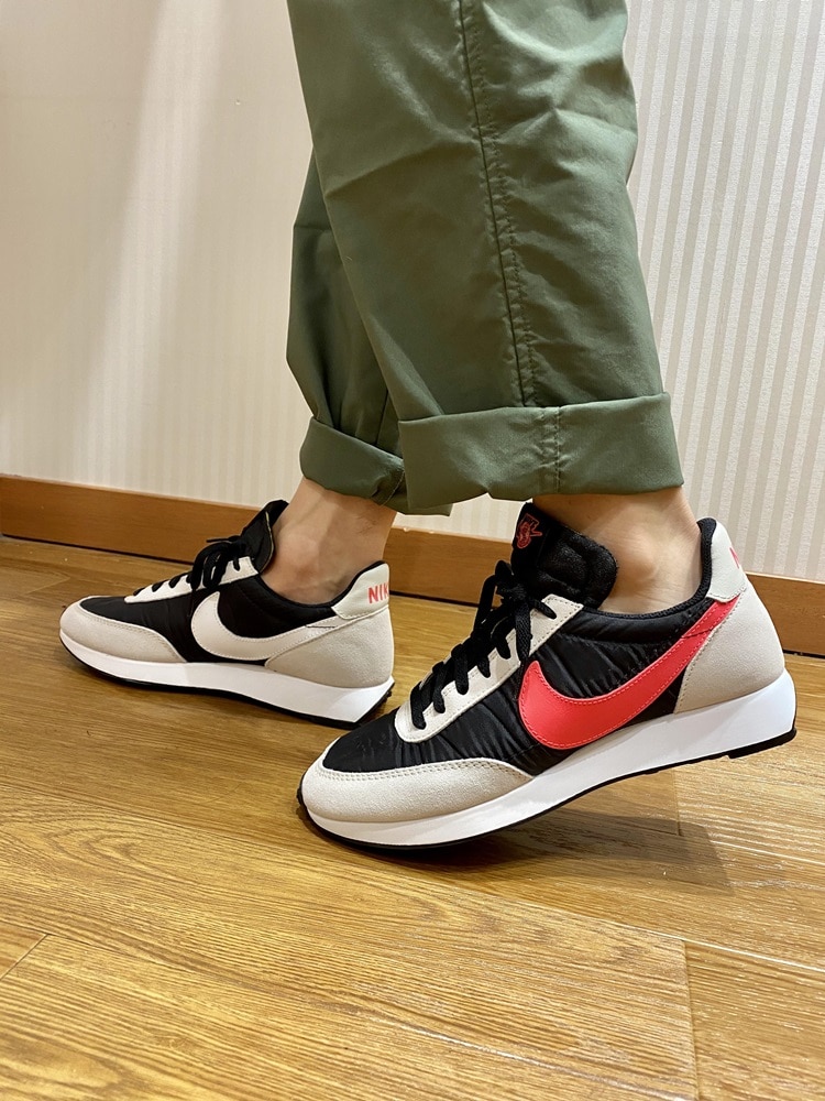 晩夏にも着られる秋色コーディネート。スニーカーでちょっとスポーツMIXに。