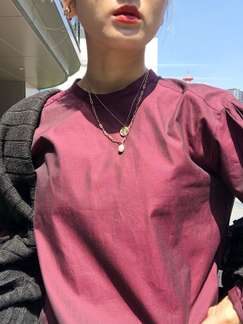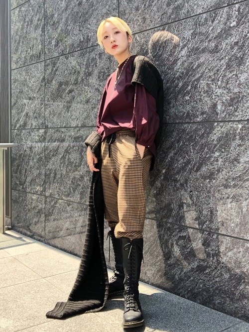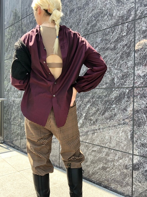 秋らしいカラーリングのブラウスは、トレンドのチェックに相性抜群です。 バックボタンなのでインナー選びも楽しみの1つです。 Muffler 【NEPLA.】 Necklace. 【Wolf Circus】