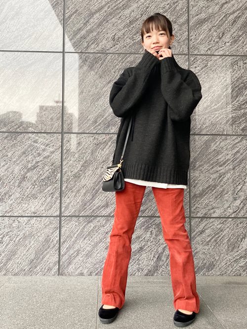 着用感:着丈もしっかりあるので細身のパンツでもバランス良く合わせて頂けます。スカートにインしても可愛いアイテムです。