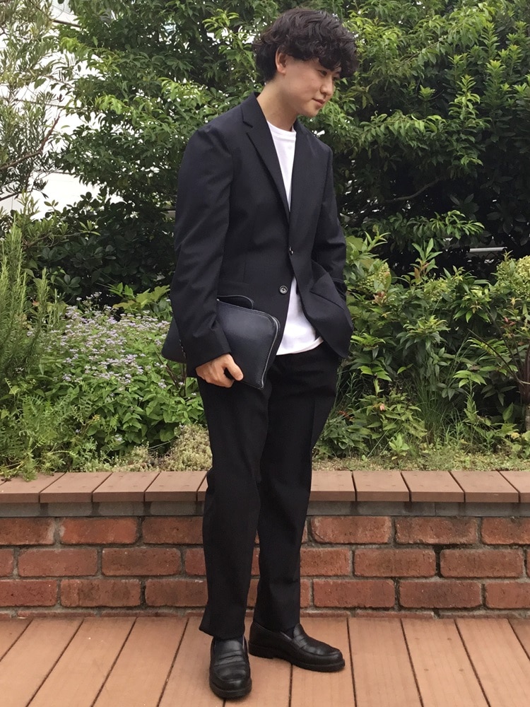 今回のスタイリングは、インナーをカットソーにしたセットアップで、堅くなりすぎないように意識しました。