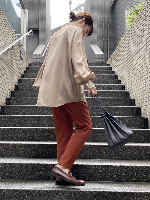 素材感・着心地:とろみのある生地。少し透け感もありさらっとしているので、今の時期から着ていただけます。