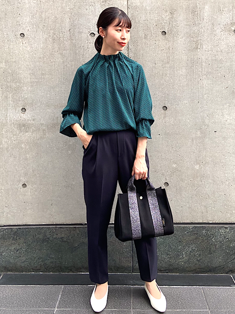 一着で存在感のあるトップスだからこそ、定番パンツで潔く。
