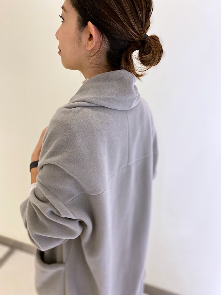 程よいボリュームと長めに着丈が魅力的なガウンです。首元にも少し膨らみがありエレガントな着こなしにもオススメです。