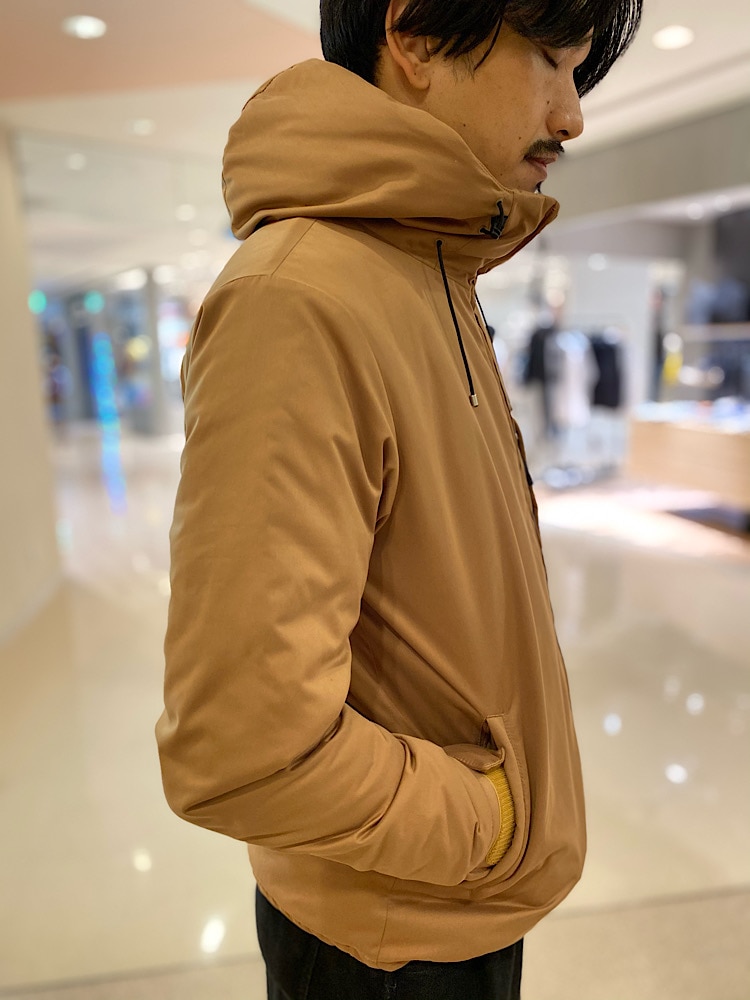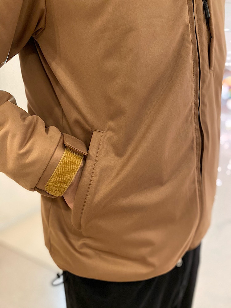 着心地:膨らみ過ぎない中綿入りで冬も過ごして頂ける温かさと軽い着心地が魅力です。