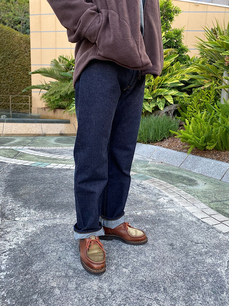 サイズ感:やや浅めの股上、お尻とモモ周りに少しゆとりのあるキレイなストレートシルエット。