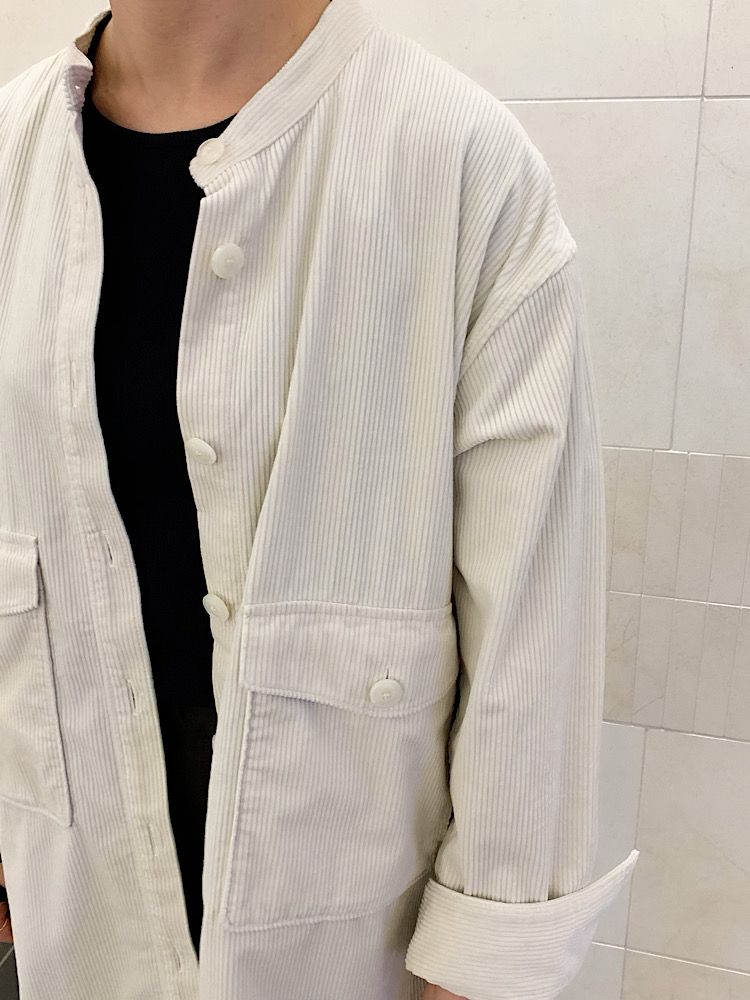 着心地:オーバーサイズなのでラフな雰囲気で羽織れます。前閉めで着てもカチッとなりすぎないシルエットです。