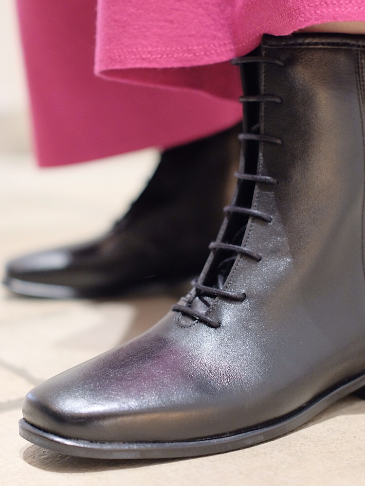 着心地:重みは少なく暖かさのある素材で透け感もなく裏地付きで冬場まで履きやすい。