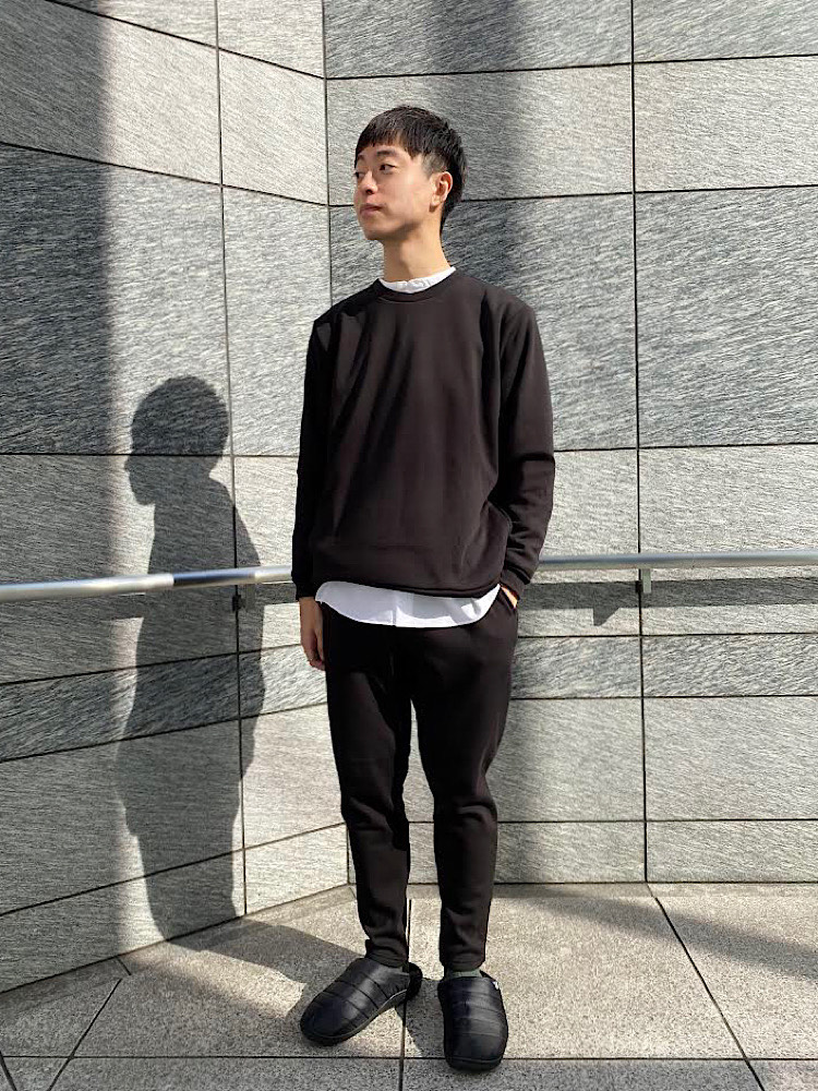 シャツをレイヤードすることで部屋着っぽくならないようにしています。