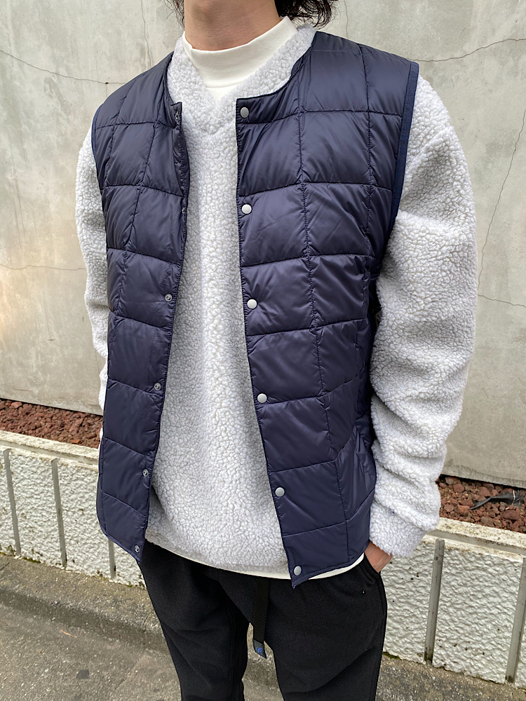 ゆったり目なコートなので上は大きめに着て下は細めでスッキリ見せたコーディネートです。