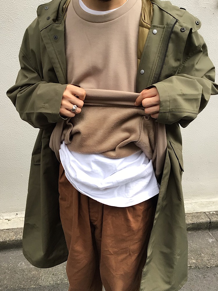 着用アイテム : コート 身長 : 165cm / 普段サイズ : L / 着用サイズ : M サイズ感 : ゆったりめ 素材感 : サラサラ 着心地 : 軽くて暖かく、中にも着込めます。