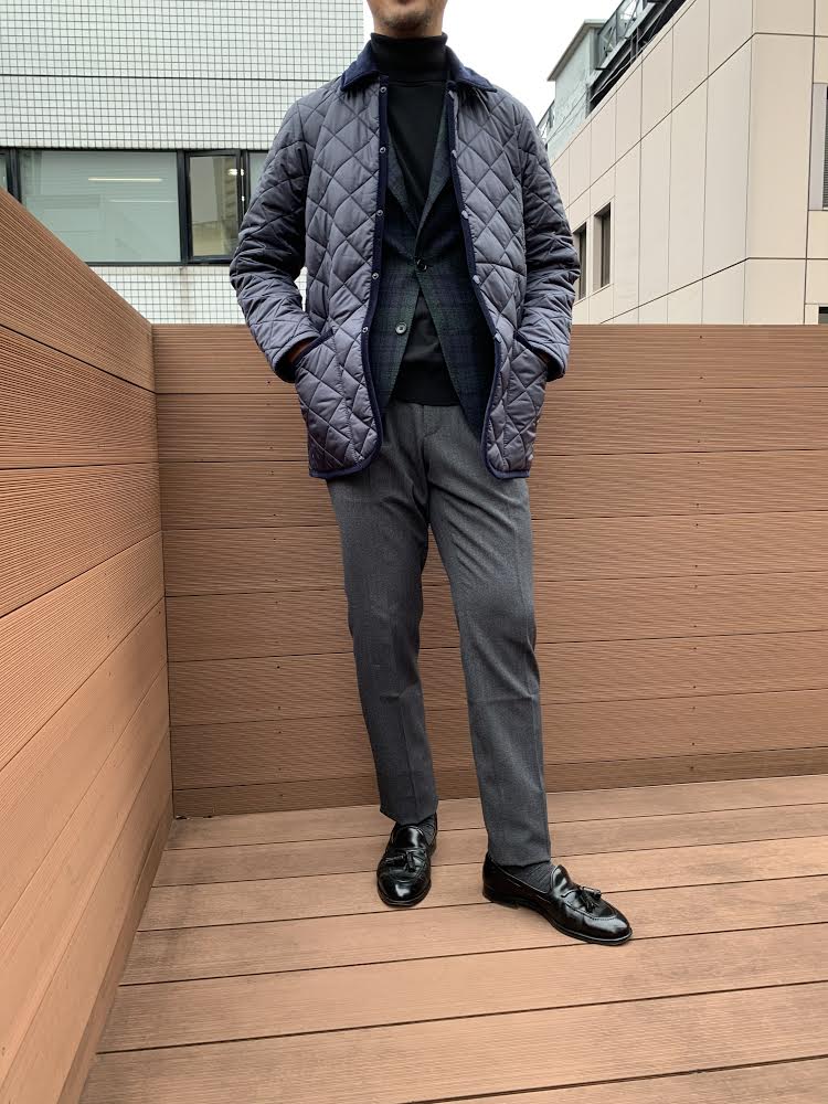 ラベンハムのアウターをメインに英国テイストのジャケット&パンツのコーディネイト。 アイテムはそれぞれ着心地を重視した物になっているのでアウターを脱いでいただけばそのままリモート会議にも対応出来る在宅ワーク兼用の装いです。 【着用レビュー】 着用アイテム:アウター 普段サイズ:L/着用サイズ:38 サイズ感:SHIPS別注のケジントンはすっきりとした見た目をキープしたままジャケットの上からの着用でもしっかりと着丈の納まるサイズ感です。 素材感:ラベンハム定番のキルティング素材は軽快な印象で見た目に重さを感じず、実際の重量感もほとんどありません。シワになりづらい生地は持ち運びにも重宝します。 着用アイテム:ジャケット 普段サイズ:48 / 着用サイズ:48 サイズ感:適度な絞りですっきりとした見た目、着やすさを両立したサイズ感。 軽い仕立てのジャケットでカーディガンライクな着心地です。 素材感:ブラックウォッチの柄にブークレ素材をのせ新鮮な印象に、柄も強く出過ぎない為落ち着いた印象になっています。 着用アイテム:ニット 普段サイズ:L/ 着用サイズ:L サイズ感:タイト過ぎないサイズ感でリラックスして着用できます。 素材感:ハイゲージのウール素材で肌触りも良く、かなり 伸縮もします。 着用アイテム:パンツ 普段サイズ:50/ 着用サイズ:50 サイズ感:イージーパンツになっておりウエストから太もも周りにゆとりがあり、膝からテーパードした綺麗なシルエットです。 素材感:ツイルの素材でハリがしっかりとある素材感。適度にストレッチも入っておりストレスのない履き心地です。