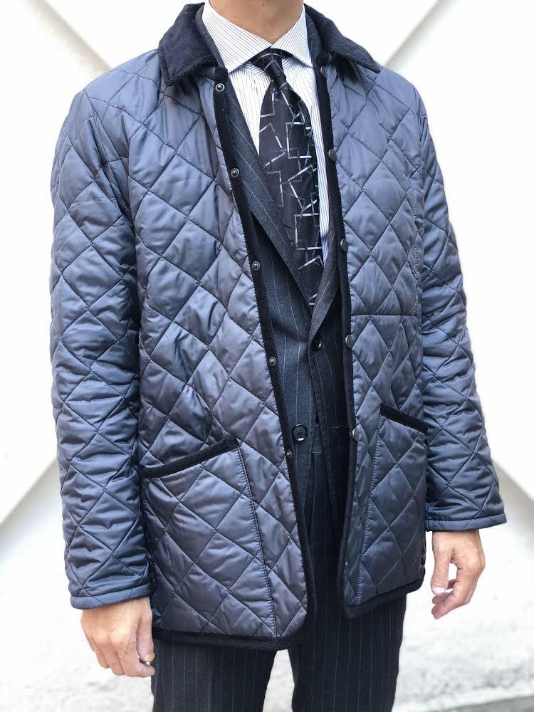 LAVENHAMを着用しモノトーンで合わせたスーツスタイル